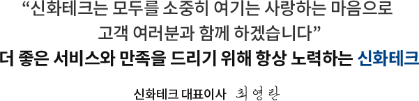 저희 신화테크는 고객님께 더 좋은 서비스와 만족을 드리기 위해 항상 노력하고 있습니다.
